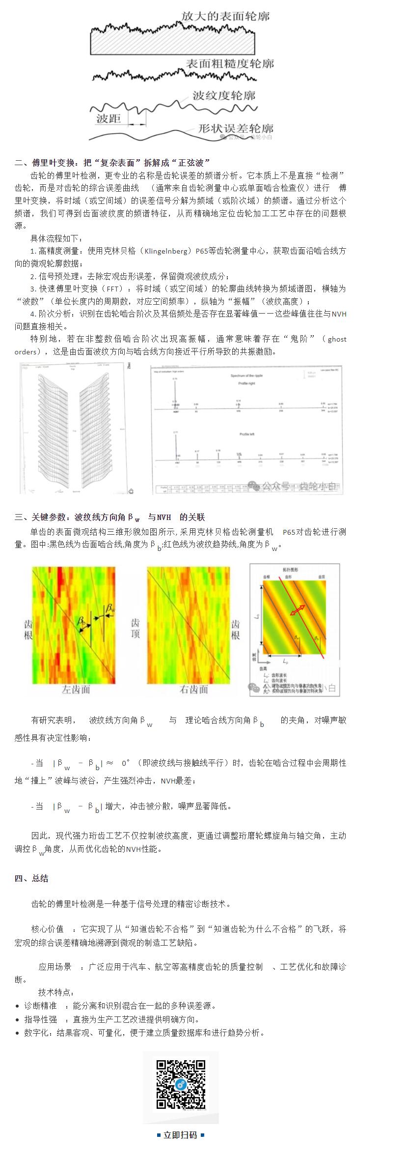 值得注意的是,波纹度并非随机粗糙度,而是具有特定空间频率和方向的周期性结构。根据标准定义,表面波纹度指的是间距大于表面粗糙度但小于表面几何形状误差的表面几何不平度,属于微观和宏观之间的几何误差。齿轮傅里叶分析正是分析齿面波纹度的一种手段。